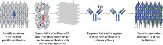 Antibody Platform: We have established a robust method for capitalizing on unusually successful immune responses naturally occurring in people who are protected from, or have recovered from, infectious diseases. This method uses specialized mAbs which have the potential to treat and prevent rapidly evolving and/or previously untreatable pathogens via direct pathogen neutralization and immune system stimulation. We identify individuals who have recovered from an infection by the target pathogen, and then use a technology we refer to as High Throughput Isolation to screen hundreds of millions of B cells from those individuals for antibodies with specific properties. We engineer these fully human antibodies that we discover to enhance their therapeutic potential. For example, we have engineered our mAbs to potentially act as T cell vaccines, which may enable continued protection from a pathogen even after the mAb is no longer present.
