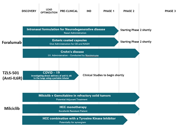 On 9 April 2020, the Company announced that it had developed investigational new technology to treat COVID-19 infections, which consists of direct delivery of anti-IL-6 receptor (anti-IL-6R) monoclonal antibodies (mAbs) into the lungs using a handheld inhaler or nebulizer. Development of this novel technology is a step forward toward expediting development of TZLS-501, a fully-human anti-interleukin-6 receptor (anti-IL6R) monoclonal antibody (mAb) for treatment of patients infected with COVID-19 (SARS-CoV-2) coronavirus. The Company believes the technology could also be applicable for use with other FDA approved mAbs and drugs. The Company has submitted a provisional patent application for the delivery technology. At this time, an estimate of the financial effect cannot be determined.