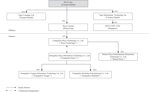 | • | “we,” “us,” “our company,” “our” and “Huya” refer to HUYA Inc., a Cayman Islands company, and its subsidiaries, and, in the context of describing our operations and combined and consolidated financial information, also include its variable interest entity and its subsidiaries in the PRC. |