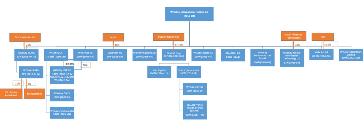 2 88% owned by WISeKey SAARC which is controlled by WISeKey International Holding Ltd