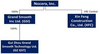 With respect to this discussion, the terms, the “Company” “we,” “us,” and “our” refer to Nocera, Inc. (“Nocera”), and its 100%-owned subsidiary Grand Smooth Inc Limited. (“GSI”), GSI’s wholly-owned subsidiary Guizhou Grand Smooth Technology Ltd. (“GZ GST”), the Company’s Variable Interest Entities (“VIE”), Guizhou Wan Feng Hu Intelligent Aquatic Technology Co. Limited. (“GZ WFH”) and Xin Feng Construction Co., Ltd. (“XFC”).