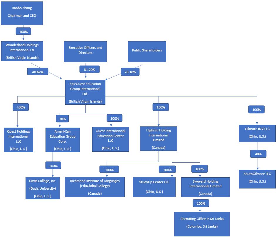 In this Annual Report on Form 20-F (the “Annual Report”), unless otherwise indicated, “we,” “us,” “our,” “EpicQuest Education,” “EpicQuest,” and “Company” refers to EpicQuest Education Group International Limited, a British Virgin Islands (“BVI”) company, and its subsidiaries, including Quest Holdings International LLC, an Ohio limited liability company (“QHI”); Quest International Education Center LLC, an Ohio limited liability company (“QIE”); Ameri-Can Education Group Corp., an Ohio corporation (“Ameri-Can”); Study Up Center LLC, an Ohio limited liability company (“SUPC”); Gilmore INV LLC, an Ohio limited liability company (“Gilmore”); SouthGilmore LLC, an Ohio limited liability company (“SouthGilmore”); Richmond Institute of Language Inc., a Canadian company, d.b.a. EduGlobal College (“RIL” or “EduGlobal College”); Highrim Holding International Limited, a Canadian company (“HHI”); and Skyward Holding International Limited, a Canadian company (“Skyward”).