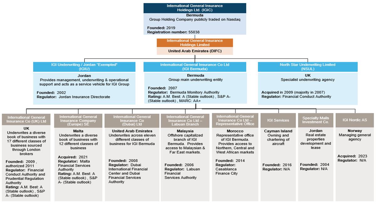 “Company” or “IGI” or “Group” means International General Insurance Holdings Ltd., a Bermuda exempted company, which became the parent company of Tiberius and IGI Dubai as a result of the Business Combination.