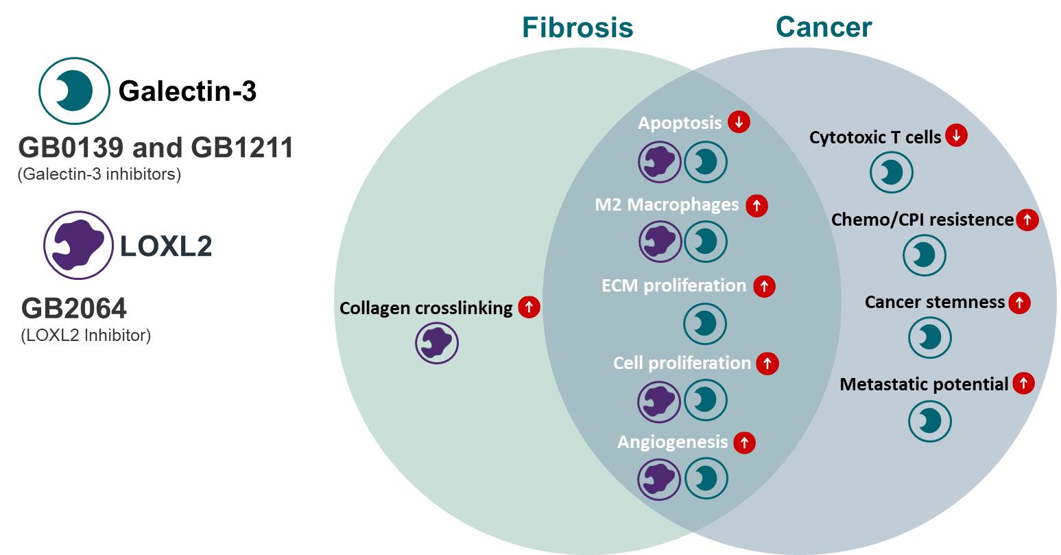 the success, cost and timing of our product development activities and planned initiation and completion of clinical trials of our other current fibrosis and oncology product candidates, including GB2064 and GB1211 and any future product candidates; |
