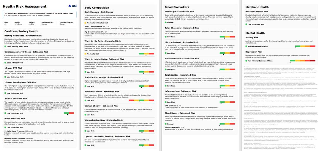 | ● | Blood Biomarker Prediction: Including HbA1C, HDL, LDL, and 10-year mortality risk. |