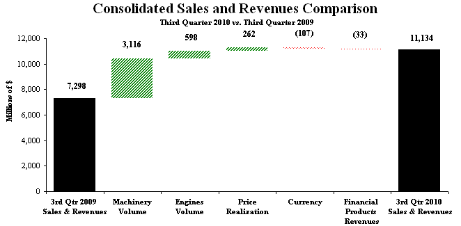 It is important to note that actual results of the company may differ materially from those described or implied in such forward-looking statements based on a number of factors, including, but not limited to: (i) economic volatility in the global economy generally and in capital and credit markets; (ii) Caterpillar’s ability to generate cash from operations, secure external funding for operations and manage liquidity needs; (iii) adverse changes in the economic conditions of the industries or markets Caterpillar serves; (iv) government regulations or policies, including those affecting interest rates, liquidity, access to capital and government spending on infrastructure development; (v) commodity price increases and/or limited availability of raw materials and component products, including steel; (vi) compliance costs associated with environmental laws and regulations; (vii) Caterpillar’s and Cat Financial’s ability to maintain their respective credit ratings, material increases in either company’s cost of borrowing or an inability of either company to access capital markets; (viii) financial condition and credit worthiness of Cat Financial’s customers; (ix) material adverse changes in our customers’ access to liquidity and capital; (x) market acceptance of Caterpillar’s products and services; (xi) effects of changes in the competitive environment, which may include decreased market share, lack of acceptance of price increases, and/or negative changes to our geographic and product mix of sales; (xii) Caterpillar’s ability to successfully implement Caterpillar Production System or other productivity initiatives; (xiii) international trade and investment policies, such as import quotas, capital controls or tariffs; (xiv) failure of Caterpillar or Cat Financial to comply with financial covenants in their respective credit facilities; (xv) adverse changes in sourcing practices for our dealers or original equipment manufacturers; (xvi) additional tax expense or exposure; (xvii) political and economic risks associated with our global operations, including changes in laws, regulations or government policies, currency restrictions, restrictions on repatriation of earnings, burdensome tariffs or quotas, national and international conflict, including terrorist acts and political and economic instability or civil unrest in the countries in which Caterpillar operates; (xviii) currency fluctuations, particularly increases and decreases in the U.S. dollar against other currencies; (xix) increased payment obligations under our pension plans; (xx) inability to successfully integrate and realize expected benefits from acquisitions; (xxi) significant legal proceedings, claims, lawsuits or investigations; (xxii) imposition of significant costs or restrictions due to the enactment and implementation of health care reform legislation and proposed financial regulation legislation; (xxiii) changes in accounting standards or adoption of new accounting standards;  (xxiv) adverse effects of natural disasters; and (xxv) other