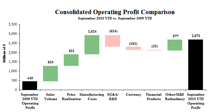 Although we are not providing a 2011 preliminary profit outlook, we expect some cost pressure as we move into 2011.  We expect increased pension and retiree medical expense primarily as a result of lower discount rates and higher research and development expense related to emissions, and we expect our effective tax rate will increase.  The U.S. active finance exception for interest earned offshore expired at the end of 2009, but will have a more significant impact on our 2011 tax rate.  Without extension of this legislation, we are forecasting an increase in our 2011 tax rate due to higher U.S. taxes on interest earned outside the United States.