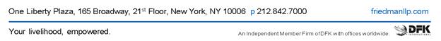 The forward-looking statements contained in this report are based on our current expectations and beliefs concerning future developments and their potential effects on us. There can be no assurance that future developments affecting us will be those that we have anticipated. These forward-looking statements involve a number of risks, uncertainties (some of which are beyond our control) or other assumptions that may cause actual results or performance to be materially different from those expressed or implied by these forward-looking statements. These risks and uncertainties include, but are not limited to, those factors described under the heading “Risk Factors.” Should one or more of these risks or uncertainties materialize, or should any of our assumptions prove incorrect, actual results may vary in material respects from those projected in these forward-looking statements. We undertake no obligation to update or revise any forward-looking statements, whether as a result of new information, future events or otherwise, except as may be required under applicable securities laws and/or if and when management knows or has a reasonable basis on which to conclude that previously disclosed projections are no longer reasonably attainable.