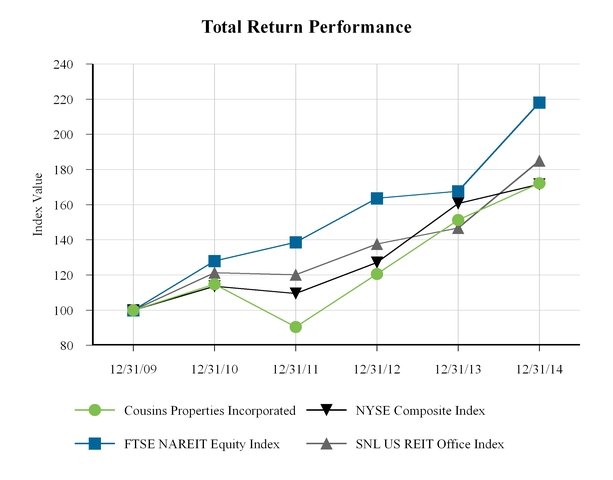As of June 30, 2014, the aggregate market value of the common stock of Cousins Properties Incorporated held by non-affiliates was $2,316,983,943 based on the closing sales price as reported on the New York Stock Exchange. As of February 9, 2015, 216,437,991 shares of common stock were outstanding.