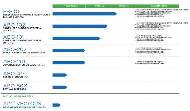 Forward-looking statements necessarily involve risks and uncertainties, and our actual results could differ materially from those anticipated in the forward-looking statements due to a number of factors. Important factors that could affect performance and cause results to differ materially from management’s expectations are described in the sections entitled “Risk Factors” and “Management’s Discussion and Analysis of Financial Condition and Results of Operations” in the Company’s Form 10-K for the fiscal year ended December 31, 2018, as updated from time to time in the Company’s Securities and Exchange Commission filings, including this Form 10-Q. These factors include: our estimates regarding expenses, future revenues, capital requirements, and needs for additional financing; our ability to raise capital; our ability to fund our operating expenses and capital expenditure requirements for at least the next 12 months with our existing cash and cash equivalents; our expectation that we will continue to incur losses; our belief that we will expend substantial funds to conduct research and development programs; our future ability to achieve profitability at all or on a sustained basis; our cash burn rate; the dilutive effect that raising additional funds by selling additional equity securities would have on the relative equity ownership of our existing investors; our belief that we have a rich pipeline of products and product candidates; our ability to continue to develop our novel adeno-associated virus (“AAV”)-based gene therapy platform technology to treat neurologic disorders, cystic fibrosis and eye disorders in human subjects; our belief that EB-101 could potentially benefit patients with recessive dystrophic epidermolysis bullosa (“RDEB”); the outcome of any interactions with the FDA or other regulatory agencies relating to any of our products or product candidates; our ability to initiate a Phase III clinical trial for patients with RDEB in the fourth quarter of 2019; our ability to complete enrollment of patients into clinical trials to secure sufficient data to assess efficacy and safety; our belief that AAV treatment could potentially benefit patients with Sanfilippo syndrome type A (“MPS IIIA”) and Sanfilippo syndrome type B (“MPS IIIB”); our ability to add clinical sites and identify additional patients for our Phase I/II clinical trial for patients with MPS IIIA and MPS IIIB; our ability to continue to secure and maintain regulatory designations for our product candidates; our ability to develop manufacturing capability compliant with current good manufacturing practices for our product candidates; our ability to manufacture gene and cell therapy products and produce an adequate product supply to support clinical trials and potentially future commercialization; our ability to secure timely regulatory review related to our clinical program; our belief in the adequacy of the data from clinical trials in EB-101 and expansion cohort of our Phase I/II clinical trial in ABO-102 (AAV-SGSH) for MPS IIIA, together with the data generated in the program to date, to support regulatory approvals; our intellectual property position and our ability to obtain, maintain and enforce intellectual property protection and exclusivity for our proprietary assets; the rate and degree of market acceptance of our product candidates for any indication once approved; our estimates regarding the size of the potential markets for our product candidates, the strength of our commercialization strategies and our ability to serve and supply those markets; our ability to meet our obligations contained in license agreements to which we are party; and the terms of future licensing arrangements or collaborations.