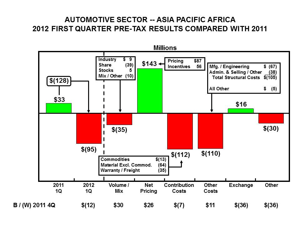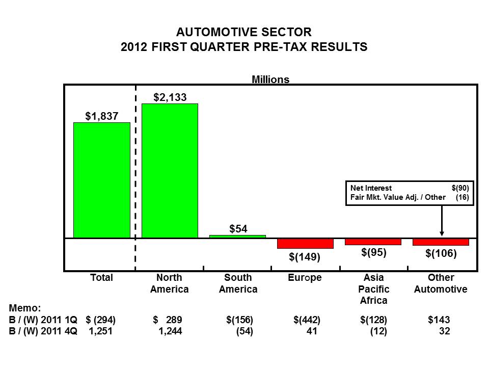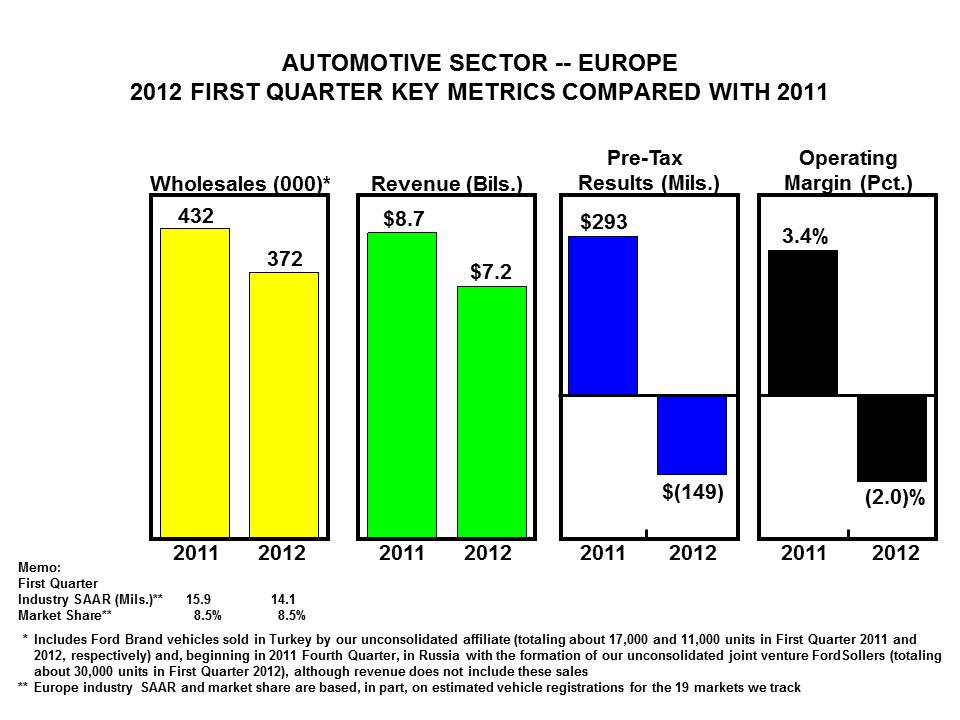 Medium/Heavy Truck Sales Procedure Class Action (as previously reported on page 27 of our 2011 Form 10-K Report). This action pending in the Ohio state court system alleges that we breached our Sales and Service Agreement with Ford truck dealers by failing to publish to all Ford dealers all price concessions that were approved for any dealer. As previously reported, the trial court certified a nationwide class consisting of all Ford dealers who purchased from Ford any 600-series or higher truck from 1987 to 1997, and granted plaintiffs' motion for summary judgment on liability. In February 2011, the jury awarded $4.5 million in damages to the named plaintiff dealer. In June 2011, the trial court applied the jury's findings with regard to the named plaintiff to all dealers in the class, entering a judgment of approximately $2 billion in damages (comprised of about $800 million in damages, and $1.2 billion in pre-judgment interest). The trial court also denied our motion to decertify the class.
