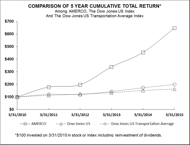 19,607,788 shares of AMERCO Common Stock, $0.25 par value, were outstanding at May 23, 2015.