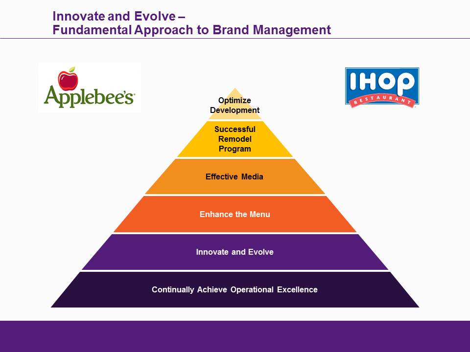 Our fundamental approach to brand building centers on a strategic combination of menu, media, remodel and development initiatives to continually innovate and evolve both brands. Our shared services operating platform allows our senior management to focus on key factors that drive both our brands while leveraging the resources and expertise of our scalable, centralized support structure. We believe this closely integrated approach is a competitive point of difference that we expect will strengthen brand performance and generate growth in free cash flow.