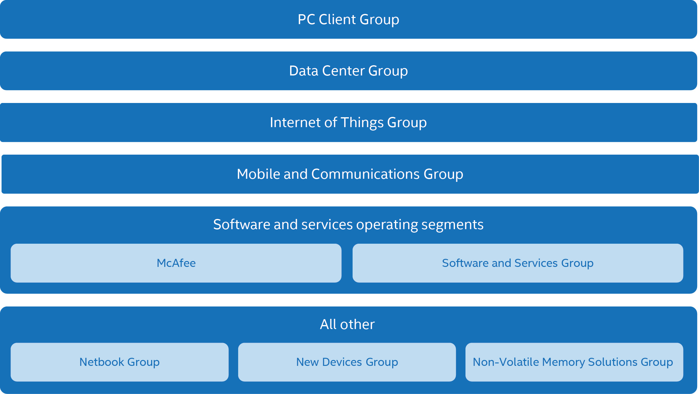 Software and Services. We offer software and services that provide solutions through a combination of hardware and software for consumer and corporate environments. Additionally, we seek to enable and advance the computing ecosystem by providing development tools and support to help software developers create software applications that take advantage of our platforms. We seek to expedite growth in various market segments, such as the embedded market segment and big data analytics, through our software offerings. We continue to collaborate with companies to develop software platforms that are optimized for Intel® processors, support multiple hardware architectures, and operating systems.