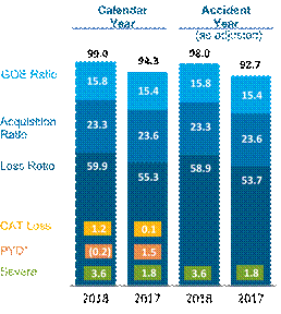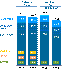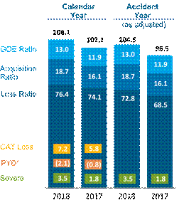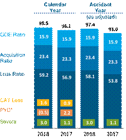 For 2018, we modified our executive compensation program to reflect our commitment to long-term, sustainable, profitable growth.  Individual 2018 short-term incentive awards for the Executive Leadership Team (ELT) are based on metrics designed to emphasize business unit accountability and on an assessment of individual strategic and qualitative performance. Our 2018 long-term incentive (LTI) program for the ELT consists of performance share units (PSUs), restricted stock units (RSUs) and stock options (weighted 50 percent, 25 percent and 25 percent, respectively). PSUs will be earned over a three-year performance period based on a mix of operating metrics consisting of improvement in Combined Ratio, growth in Core Book Value per Share and Core Normalized Return on Equity.  In addition, annual LTI grant amounts for ELT members take into account an assessment of individual performance.