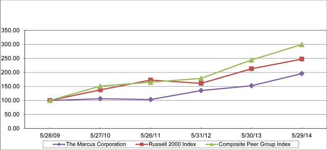 101 The following materials from The Marcus Corporation’s Annual Report on Form 10-K for the fiscal year ended May 29, 2014 are filed herewith, formatted in XBRL (Extensible Business Reporting Language): (i) the Consolidated Balance Sheets, (ii) the Consolidated Statements of Earnings, (iii) the Consolidated Statements of Comprehensive Income, (iv) the Consolidated Statements of Cash Flows, and (v) Notes to Consolidated Financial Statements.