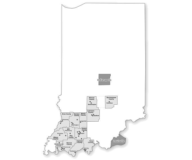The Indiana map below illustrates the locations of the Company’s 38 retail and commercial banking, insurance and investment offices as of March 1, 2013.
