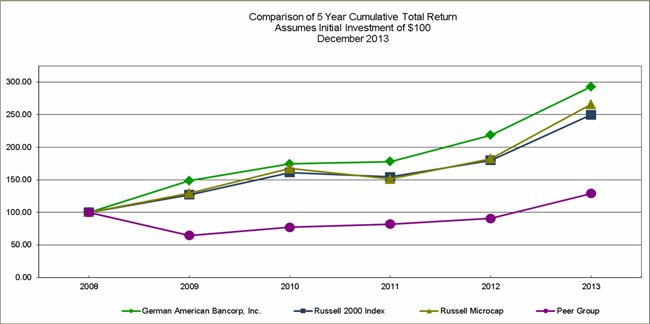 The Company acquired by merger (effective October 1, 2013) United Commerce Bancorp and its subsidiary, United Commerce Bank. United Commerce Bank provided a full range of commercial and consumer banking services in the Bloomington, Indiana, market, from two banking offices. During the fourth quarter of 2013, one of those branch locations was consolidated into an existing branch banking location of German American Bancorp. United Commerce had consolidated assets and deposits (unaudited) as of October 1, 2013 that totaled $119.7 million and $106.6 million, respectively. The Company continues its focus on growing its base of operations in the Bloomington, Indiana, market.
