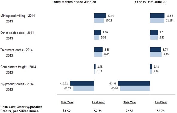 We recognized a $2.1 million net loss during the first six months of 2014 on the contracts utilized to manage exposure to prices for forecasted future concentrate shipments, which is net of $2.0 million in gains realized on settled contracts. The net loss on these contracts is included as a separate line item under other income (expense), as they relate to forecasted future shipments, as opposed to sales that have already taken place but are subject to final pricing.  The net loss during the first six months of 2014 is primarily the result of increasing zinc prices. This program is designed to mitigate the impact of potential future declines in lead and zinc prices from the price levels established in the contracts (see average price information below).
