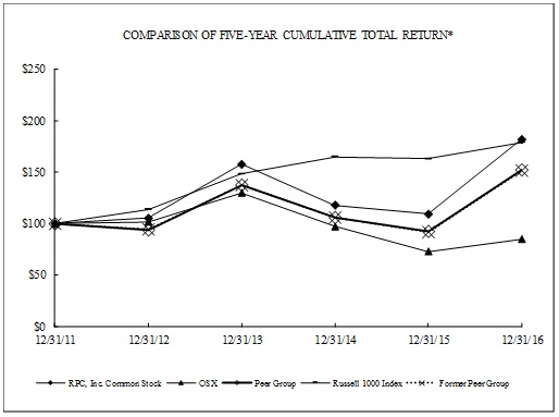 The fluctuations in domestic drilling activity since the most recent peak in the third quarter of 2014 are consistent with global supply of and demand for oil, the domestic supply of and demand for natural gas, U.S. domestic storage levels of oil and natural gas, fluctuations in the value of the U.S. dollar on world currency markets, and projected near-term economic growth. During 2015 and into the first quarter of 2016, the price of oil fell by approximately 78 percent from its most recent cyclical peak in the third quarter of 2014. From its low price in early 2016, the price of oil had risen by approximately 80 percent early in the first quarter of 2017. RPC believes that the decrease in the price of oil during this period was caused by the actions of the Organization of the Petroleum Exporting Countries (OPEC) cartel, increased supply from the domestic U.S. market, weak global demand, the strength of the U.S. dollar on global currency markets and high storage levels of oil. The precipitous decline in the price of oil that took place between the third quarter of 2014 and the second quarter of 2016 caused a significant decrease in oil-directed drilling activity. The price of natural gas fell during this time as well, declining by approximately 42 percent from the beginning of 2015 to the second quarter of 2016. Early in the first quarter of 2017, however, the price of natural gas had risen by approximately 77 percent from the low recorded in the second quarter of 2016, and was approximately 19 percent higher than its price early in 2015. Early in 2017, the price of oil was high enough to encourage increased drilling and production activity, but the price of natural gas had not reached levels that were adequate to encourage natural gas-directed drilling activity in the U.S. domestic oilfield. In addition to oil and natural gas, the price of natural gas liquids is a determinant of our customers’ activity levels, since it is produced in many of the shale resource plays which also produce oil, and production of various natural gas liquids has increased to a level comparable to that of natural gas. During 2015 the average price of natural gas liquids decreased by approximately 56 percent compared to 2014, but during 2016 the average price of natural gas liquids increased by approximately six percent compared to 2015. Early in the first quarter of 2017, the price of natural gas liquids had increased by approximately 65 percent compared to the average price in 2016. The fluctuations in the prices of these commodities, and in particular, the extreme volatility in the price of oil, significantly impact RPC’s financial results.