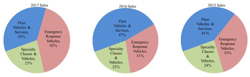 In the years ended December 31, 2017, 2016 and 2015, interior equipment up-fitting and aftermarket parts sales represented 17.3%, 25.9% and 14.9% of the Fleet Vehicles and Services segment sales.
