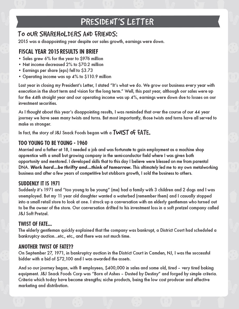 J & J SNACK FOODS CORP.