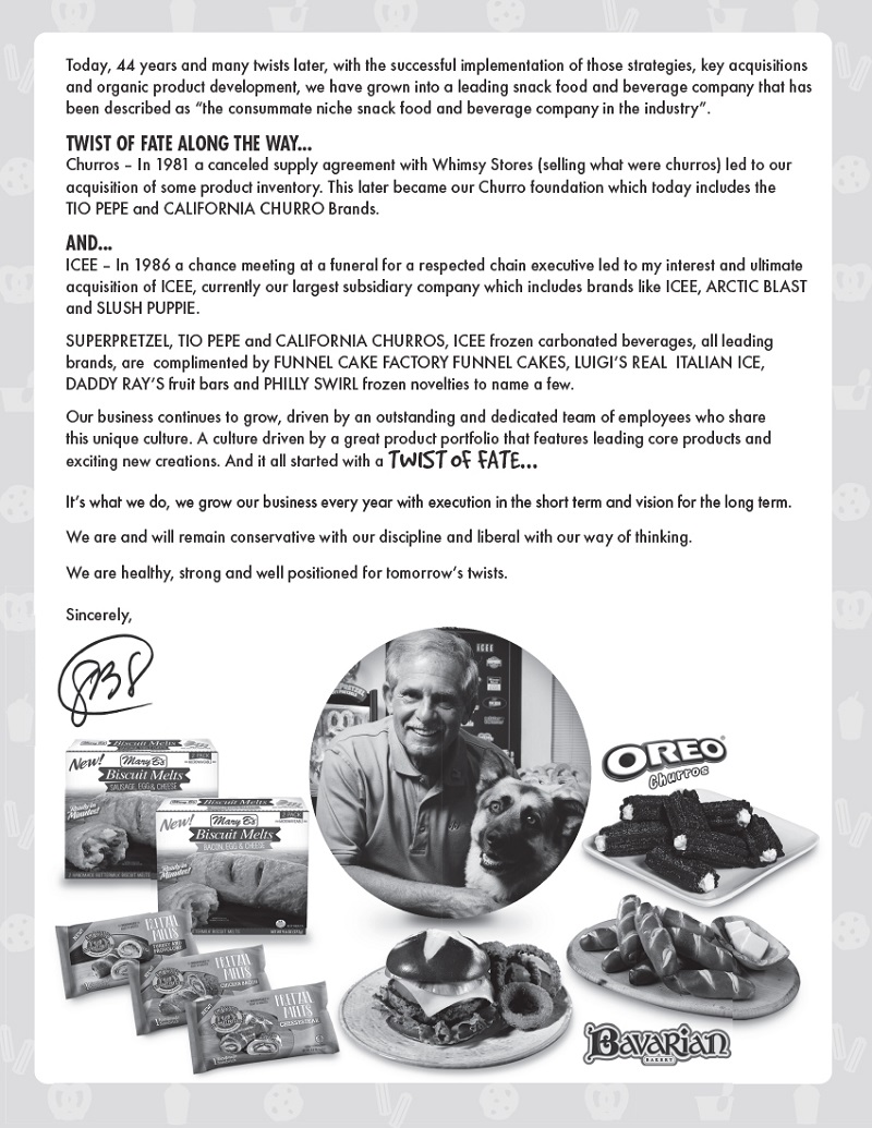 The Company’s Food Service and Frozen Beverages sales are made primarily to food service customers including snack bar and food stand locations in leading chain, department, discount, warehouse club and convenience stores; malls and shopping centers; fast food outlets; stadiums and sports arenas; leisure and theme parks; movie theatres; independent retailers; and schools, colleges and other institutions. The Company’s retail supermarket customers are primarily supermarket chains.