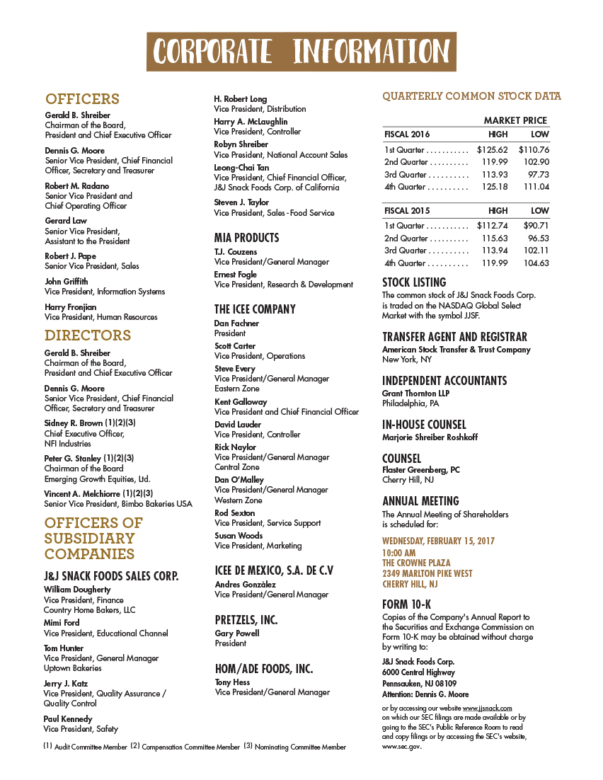 J & J SNACK FOODS CORP.