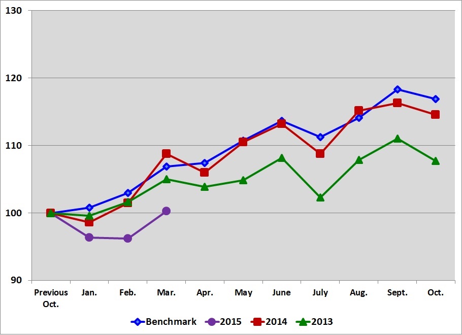 The table below sets forth information regarding purchases of our common stock during the first quarter of 2015: