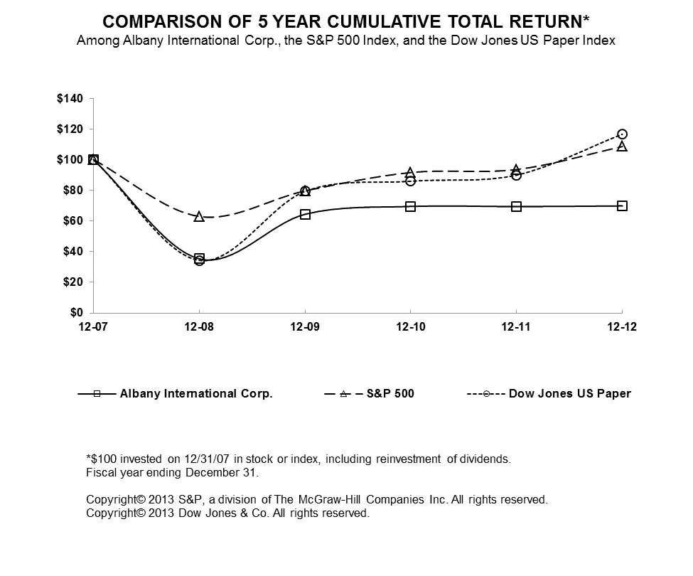 Albany International is listed on the New York Stock Exchange (Symbol AIN). Stock tables in newspapers and financial publications list Albany International as “AlbanyInt.”