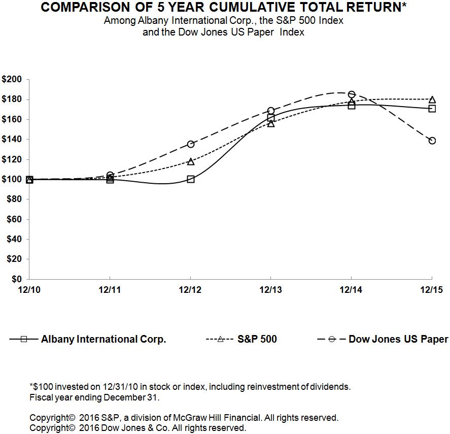 Albany International is listed on the New York Stock Exchange (Symbol AIN). Stock tables in newspapers and financial publications list Albany International as “AlbanyInt.”