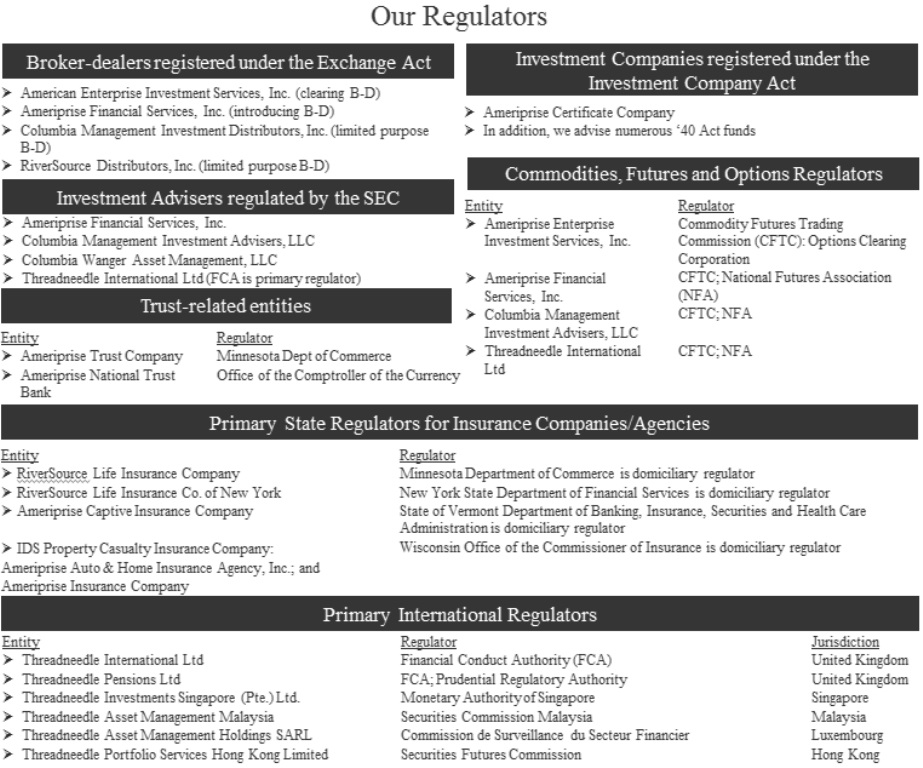 Ameriprise Financial, Inc. is a diversified financial services company with a more than 120 year history of providing financial solutions to help clients confidently achieve their financial objectives. Ameriprise is a holding company incorporated in Delaware that primarily engages in business through its subsidiaries. Accordingly, references to “Ameriprise,” “Ameriprise Financial,” the “Company,” “we,” “us,” and “our” may refer to Ameriprise Financial, Inc. exclusively, to our entire family of companies, or to one or more of our subsidiaries. Our headquarters is located at 55 Ameriprise Financial Center, Minneapolis, Minnesota 55474. We also maintain executive offices in New York City.