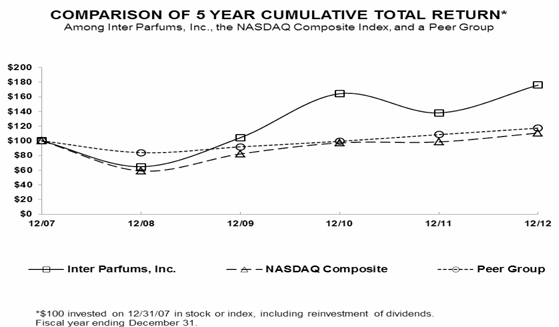 Our common stock is listed on The Nasdaq Global Select Market under the trading symbol “IPAR”. The common shares of our subsidiary, Interparfums SA, are traded on the Euronext Exchange.