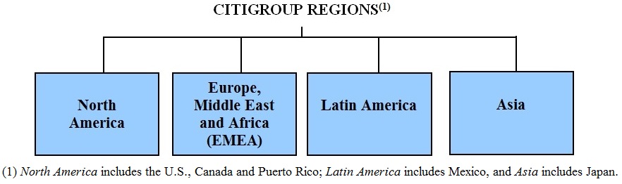 The following are the four regions in which Citigroup operates. The regional results are fully reflected in the segment results above.