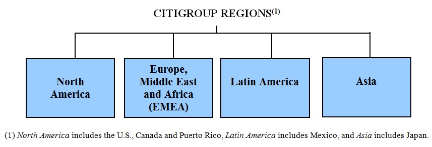 The following are the four regions in which Citigroup operates. The regional results are fully reflected in the segment results above.