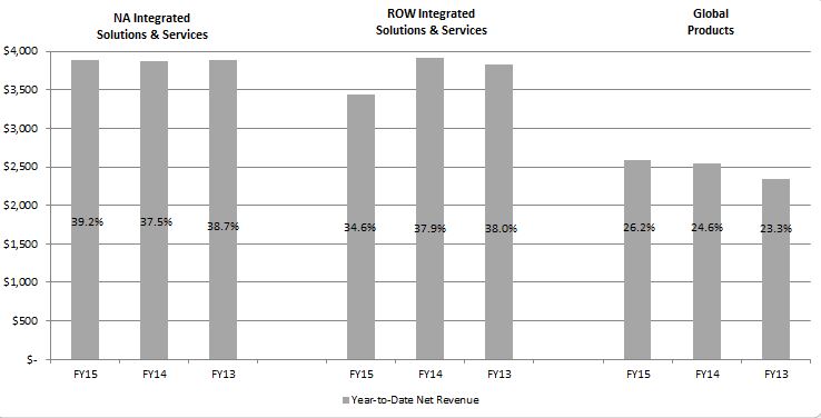 During the fourth quarter of fiscal 2015, the Company changed the name of its North America Installation & Services and Rest of World Installation & Services segments to North America Integrated Solutions & Services and Rest of World Integrated Solutions & Services, respectively. The segment reporting structure is consistent with how management reviews the businesses, makes investing and resource decisions and assesses operating performance. The name changes better reflect the Company's focus on providing technology solutions that encompass a mix of products, services and consultation that is tailored to the unique needs of each customer. No changes were made to the current segment structure or underlying financial data that comprise each segment as a result of the name changes and there was no impact to previously disclosed segment information.