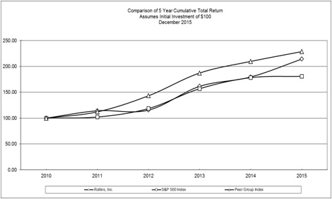 The aggregate market value of Rollins, Inc. Common Stock held by non-affiliates on June 30, 2015 was $2,708,382,648 based on the reported last sale price of common stock on June 30, 2015, which is the last business day of the registrant’s most recently completed second fiscal quarter.