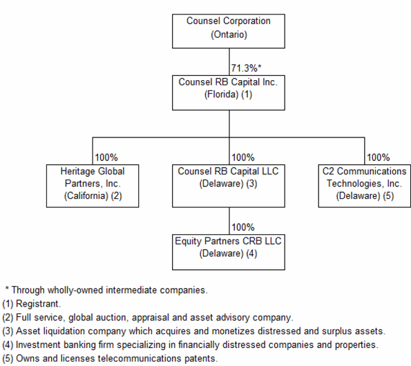 ·At March 31, 2013 and December 31, 2012 the Company was 71.3% owned, and therefore controlled, by Counsel. At December 31, 2011 the Co-CEOs of Counsel RB each owned 5.98% of the Company. One million shares, or 3.7%, were held by a single investor. The remaining 8.2% was owned by public stockholders. On February 29, 2012, as discussed in Note 3 of the unaudited condensed consolidated interim financial statements, the Company issued one million common shares as part of the consideration for its acquisition of Heritage Global Partners, representing 3.69% of the then-outstanding common shares. Subsequently, on August 10, 2012, the Company issued 800,000 shares to its Co-CEOs in connection with the acquisition of intellectual property from them. Counsel’s ownership was thereby decreased to 71.3%, that of the Co-CEOs increased to 7.0% each, that of both the single investor referenced above, and the former owners of Heritage Global Partners, decreased to 3.5%, and that of the remaining public stockholders decreased to 7.7%.