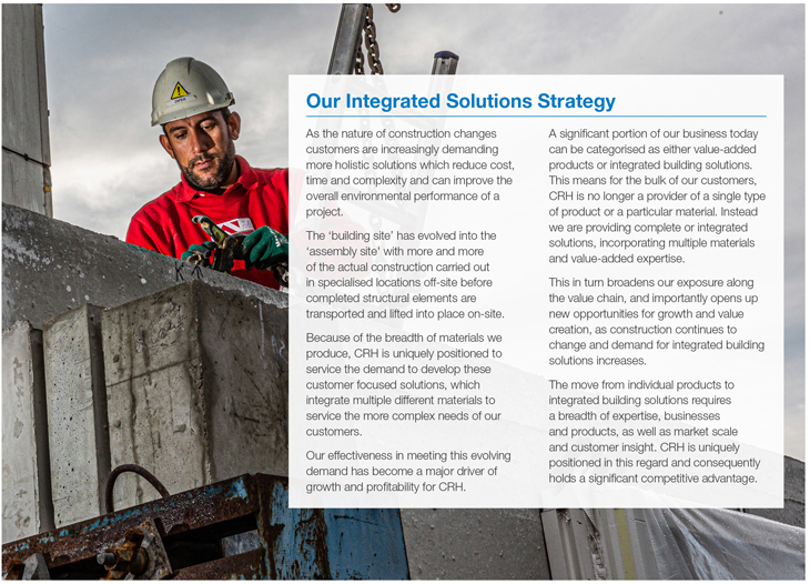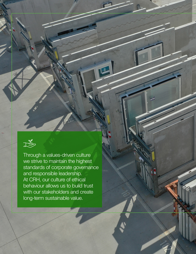 CRH is, and will continue to be, a leader in providing solutions in the built environment for the challenges and opportunities arising from mitigating and managing the impact of climate change and supporting environmentally sustainable economic growth.