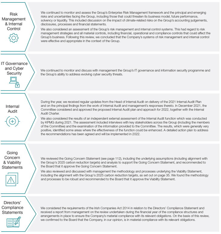 In addition, to support our ongoing transparency on these matters, the Audit Committee oversaw the significant expansion of our disclosures in this document in line with the expectations of the Task Force on Climate-Related Financial Disclosure (TCFD), the emerging EU Taxonomy and further disclosures in respect of relevant accounting estimates and judgements.