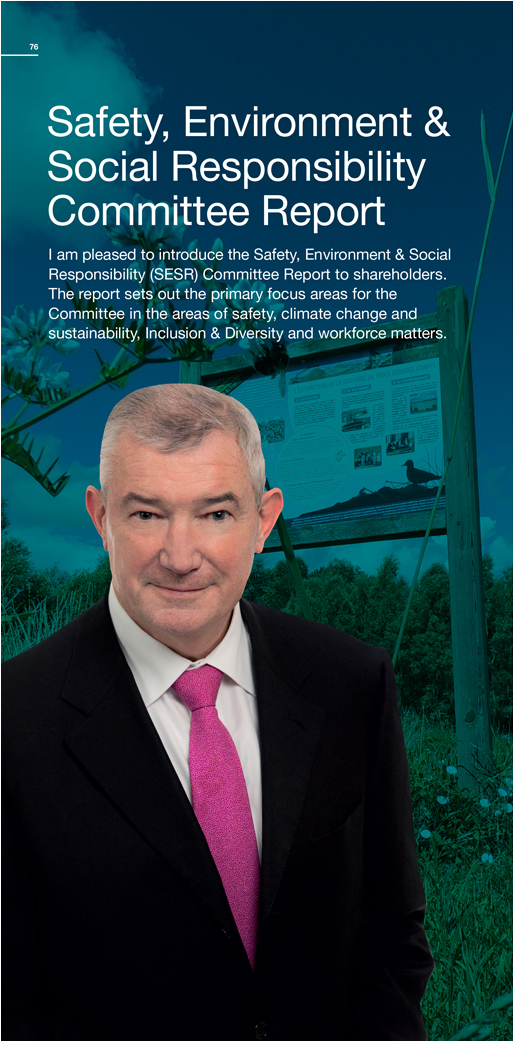 During 2021 CRH conducted a comprehensive Group-wide employee survey seeking insights into a wide range of matters relating to their experiences as employees. This survey was complemented by a series of direct engagements, with similar objectives, between the SESR Committee and groups of employees from across CRH. In assessing the relevant information gathered from the survey and direct engagement, the Committee was able to report to the Board that safety, employee health and well-being were recognised by employees as being very important priorities for CRH and that this, including how CRH has supported employees throughout the COVID-19 pandemic, is appreciated and valued.