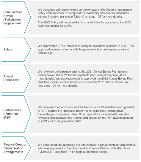 Long-term succession planning for senior executive roles continued to be a core focus for the Board in 2021. Details in relation to the Board’s approach to this important topic is set out in the Nomination & Corporate Governance Report on page 71.