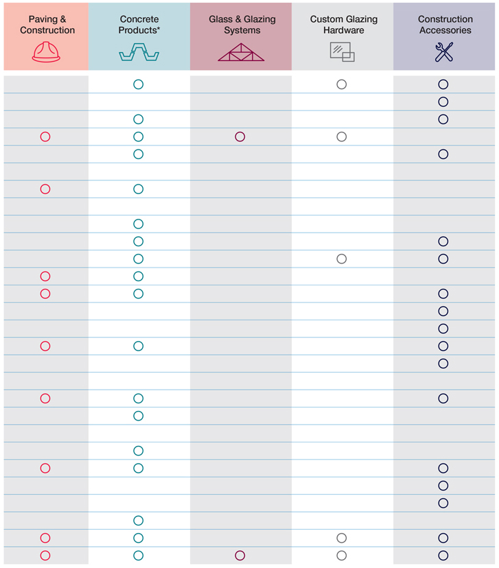building materials and products, supplying a range of integrated solutions for use in homes. and building owners to design, engineer, test and manufacture solutions for the building envelope including curtain walls, storefronts and architectural glass. building materials and products to create highly engineered systems to collect, connect & protect vital utility infrastructure. and recycle end-to-end infrastructure solutions which connect communities using uniquely integrating materials, products, solutions and services.