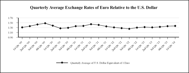 The Company estimates that the change in value of foreign currencies relative to the U.S. Dollar had a favorable impact on operating profit of approximately $1.7 million in the first quarter of 2014 compared with the first quarter of 2013.