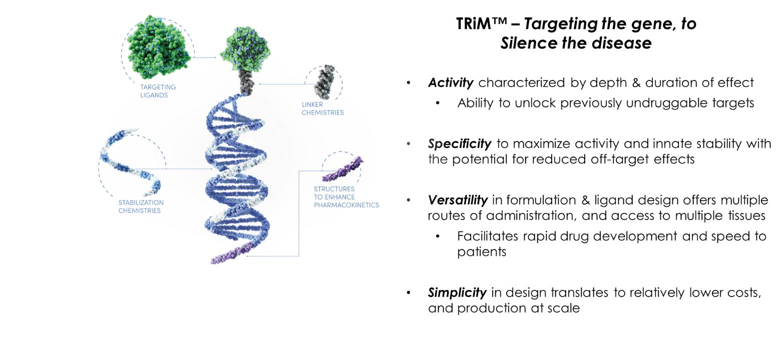 Arrowhead develops medicines that treat intractable diseases by silencing the genes that cause them. Using a broad portfolio of RNA chemistries and efficient modes of delivery, Arrowhead therapies trigger the RNA interference mechanism to induce rapid, deep and durable knockdown of target genes. RNA interference (“ RNAi”) is a mechanism present in living cells that inhibits the expression of a specific gene, thereby affecting the production of a specific protein. Deemed to be one of the most important recent discoveries in life science with the potential to transform medicine, the discoverers of RNAi were awarded a Nobel Prize in 2006 for their work. Arrowhead’s RNAi-based therapeutics leverage this natural pathway of gene silencing.