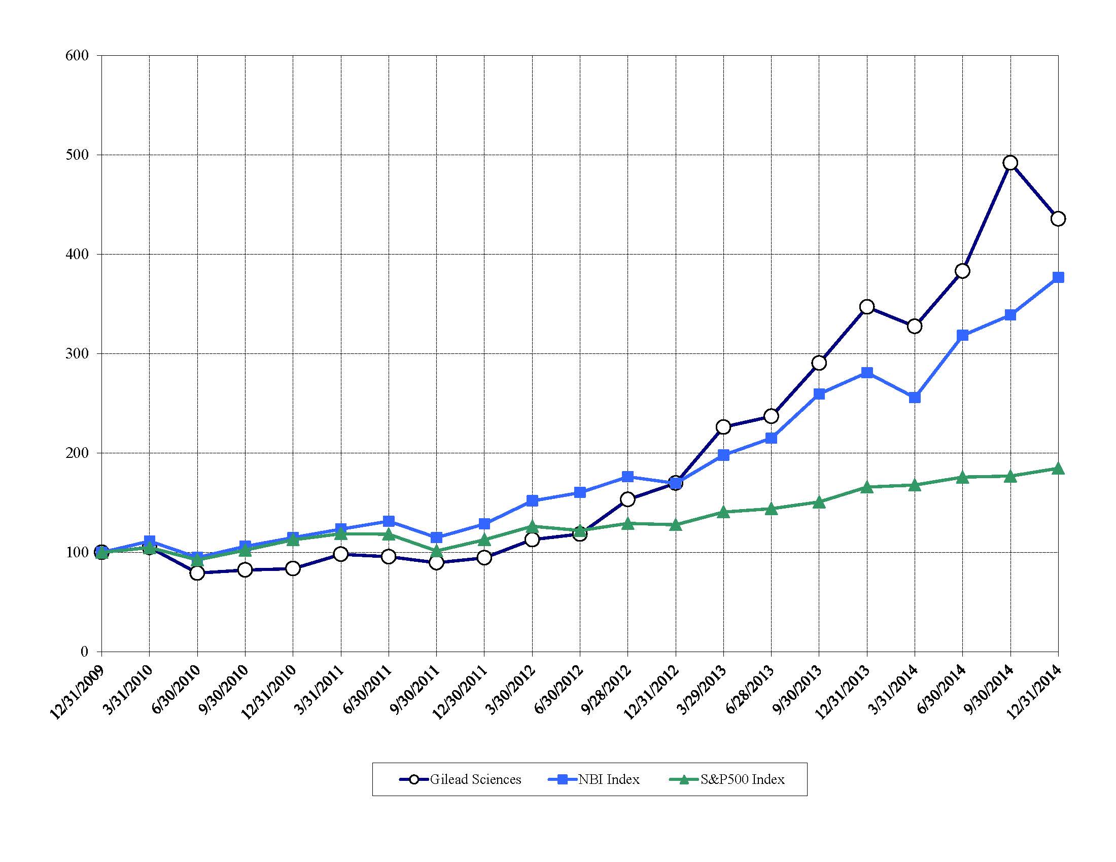 Over the past year, we brought best-in-class drugs to market that advanced the standard of care by offering enhanced modes of delivery, more convenient treatment regimens, improved resistance profiles, reduced side effects and greater efficacy. In the liver diseases area, we received approval from the U.S. Food and Drug Administration (FDA) and the European Commission of Harvoni®, the first once-daily single tablet regimen for the treatment of HCV genotype 1 infection in adults. Harvoni combines the NS5A inhibitor ledipasvir with the nucleotide analog polymerase inhibitor sofosbuvir, which was approved under the tradename Sovaldi® in December 2013. The approval of Harvoni represents a significant improvement in the treatment paradigm for the majority of HCV genotype 1 infected patients because it eliminates the need for pegylated interferon (peg-IFN) injections and ribavirin (RBV). In clinical studies, Harvoni demonstrated very high cure rates of 94% to 99% in eight or twelve weeks. In the HIV area, we submitted a new drug application (NDA) for a once-daily single tablet regimen containing elvitegravir 150 mg, cobicistat 150 mg, emtricitabine 200 mg and tenofovir alafenamide (TAF) 10 mg (E/C/F/TAF) for the treatment of HIV-1 infection in adults. We also received approval in the United States of Tybost® (cobicistat) and Vitekta® (elvitegravir 85 mg and 150 mg), each a component of Stribild®. In the oncology area, we received approval of Zydelig® (idelalisib), a first-in-class, targeted, oral inhibitor of PI3K delta, in combination with rituximab for the treatment of certain patients with chronic lymphocytic leukemia (CLL), small lymphocytic lymphoma (SLL) and follicular lymphoma (FL), the most common type of indolent non-Hodgkin's lymphoma (iNHL). We also advanced our research and development pipeline, with 225 active clinical studies at the end of 2014, of which more than 54 were Phase 3 clinical trials.