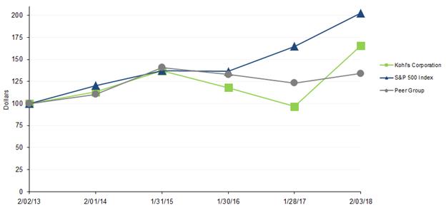 The actual number of shares which will be earned at the end of the three-year vesting periods will vary based on our cumulative financial performance over the vesting periods. The number of performance share units earned will be modified up or down based on Kohl’s Relative Total Shareholder Return against a defined peer group during the vesting periods.  The payouts, if earned, will be settled in Kohl's common stock after the end of each multi-year performance periods.