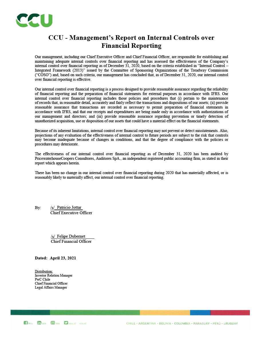 Felipe Dubernet, (562-24273536), fdubern@ccu.cl Vitacura 2670, Twenty-Third Floor, Santiago, Chile