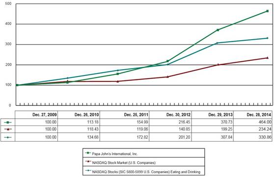 Financial statements from the Annual Report on Form 10-K of Papa John’s International, Inc. for the year ended December 28, 2014, filed on February 24, 2015, formatted in XBRL: (i) the Consolidated Statements of Income, (ii) the Consolidated Statements of Comprehensive Income, (iii) the Consolidated Balance Sheets, (iv) the Consolidated Statements of Stockholders’ Equity, (v) the Consolidated Statements of Cash Flows and (vi) the Notes to Consolidated Financial Statements.