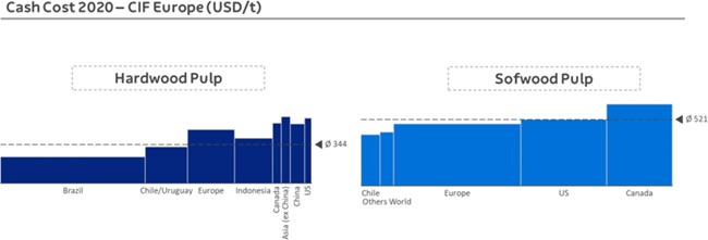 With regard to the foreign market revenues of the pulp operating segment, China and USA are the main countries in relation to net revenue, 47.97% and 16.54%, respectively, for the year ended December 31, 2020 (China and USA represented 40.00% and 16.54%, respectively, on December 31, 2019).